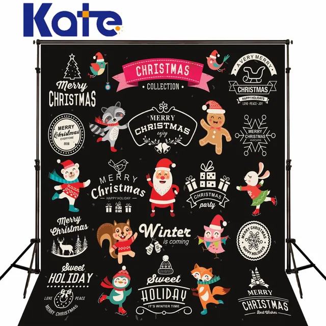 Kate Hitam Latar Belakang Santa Klausa Lucu Kartun Hewan Untuk Anak | Download Gambar