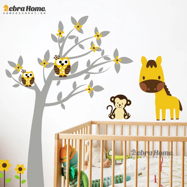 Diy Dinding Sticke Anak Kamar Anak Decal Kartun Lucu Hewan Owl Bunga | Download Gambar