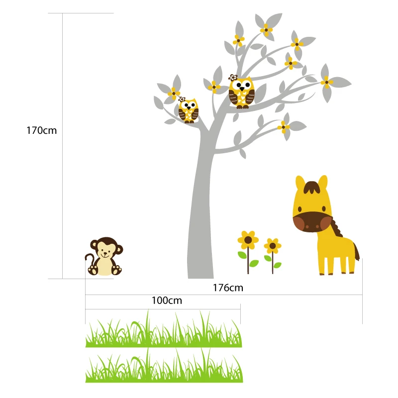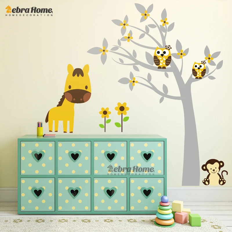 Diy Dapat Dilepaskan Stiker Dinding Kartun Lucu Animal Hutan Pohon | Download Gambar