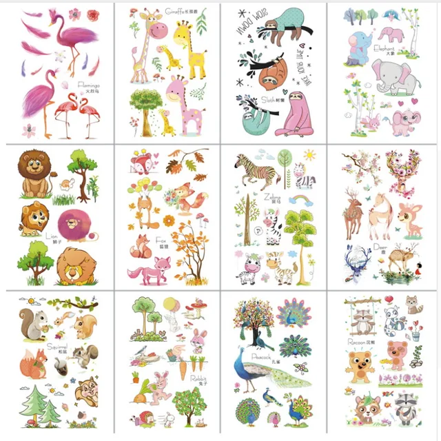 Baru Kartun Lucu Anak Flamingo Fox Gajah Sapi Tupai Hewan Stiker | Download Gambar