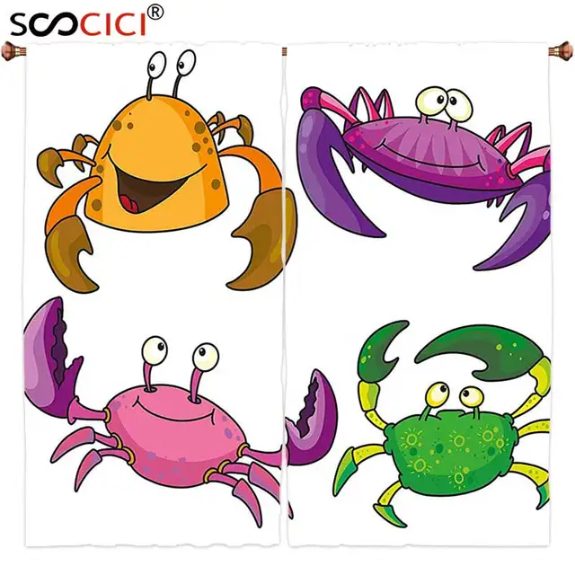 Tirai Jendela Perawatan 2 Panel Kepiting Decor Anak Dekorasi Pola | Download Gambar