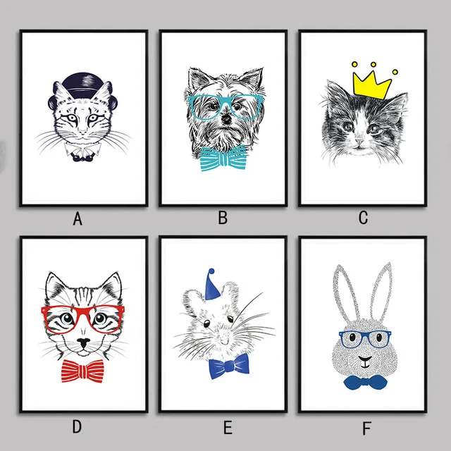 Modern Nordic Kartun Hewan Lucu Anjing Kucing Kelinci Seni Cetak | Download Gambar