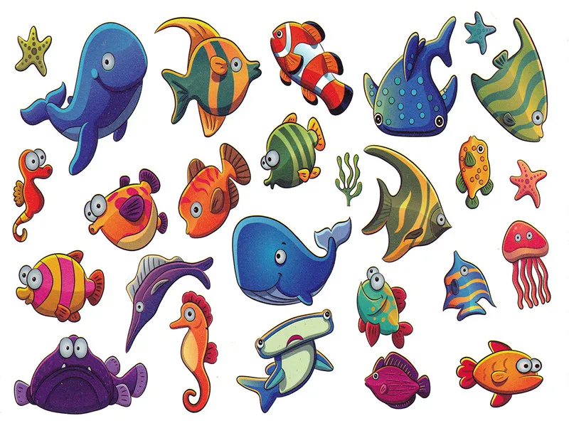 Tahan Air Sementara Tato Palsu Stiker Lucu Ikan Lumba Lumba Ubur | Download Gambar