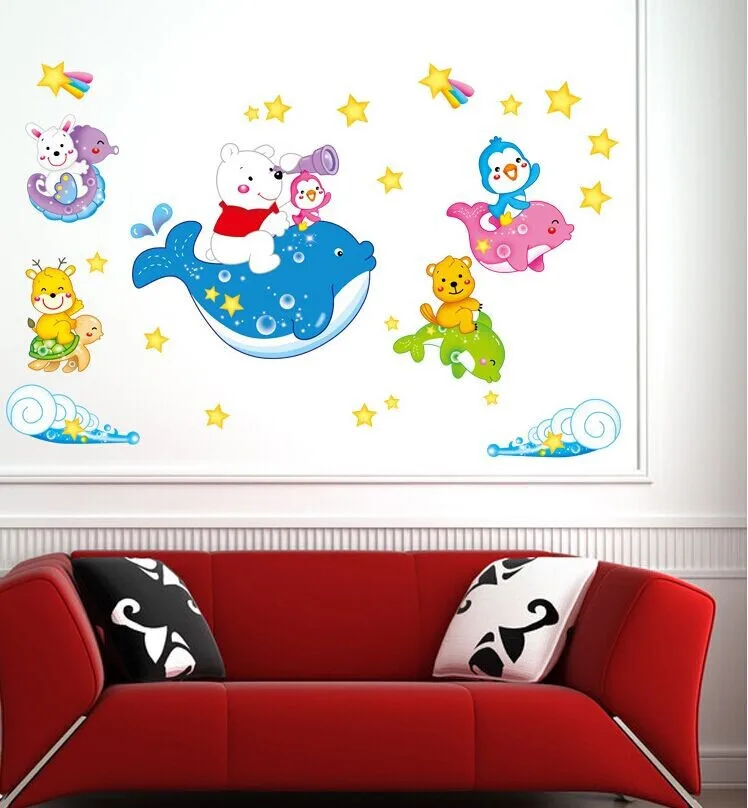 Lucu Kartun Vinyl Stiker Dinding Lucu Lumba Lumba Dan Hewan Ikan | Download Gambar