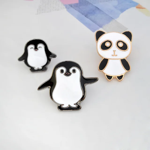 Kartun Lucu Lucu Enamel Pin Penguin Panda Hewan Anime Ikon Bulu | Download Gambar