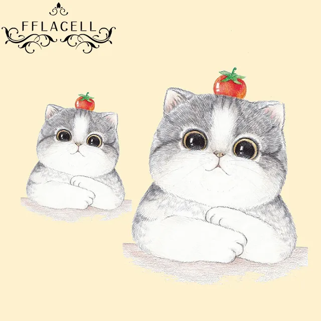 Fflacell Tangan Dicat Kartun Lucu Kucing Thermal Transfer Offset | Download Gambar