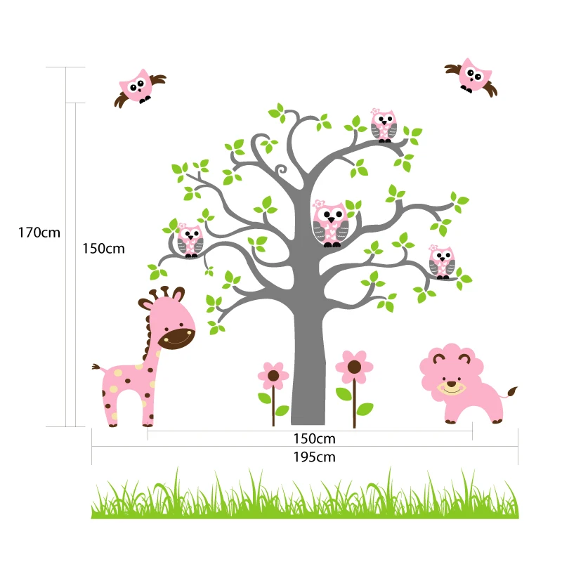 Owl Pohon Cabang Dan Rusa Singa Kartun Lucu Wall Sticker Decal Mural | Download Gambar