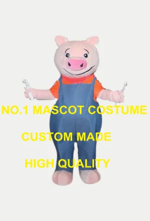 Lucu Babi Maskot Kostum Dengan Tema Biru Overall Ukuran Dewasa | Download Gambar