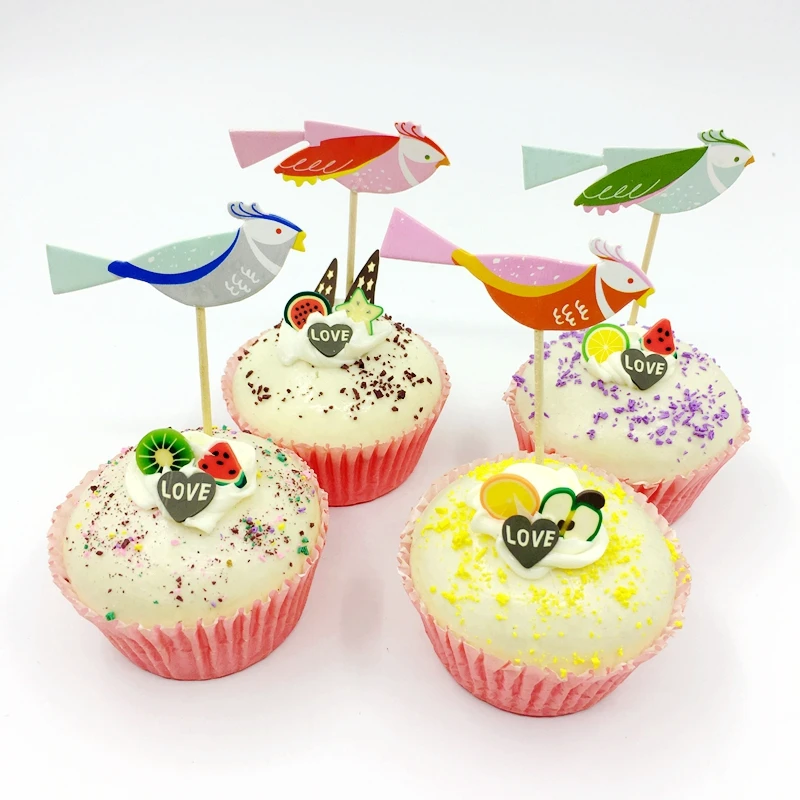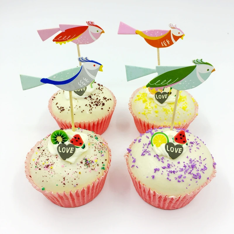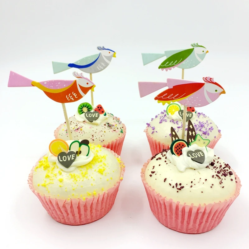 24 Pcs Lucu Hai Burung Cupcake Topper Picks Kartun Keberuntungan | Download Gambar
