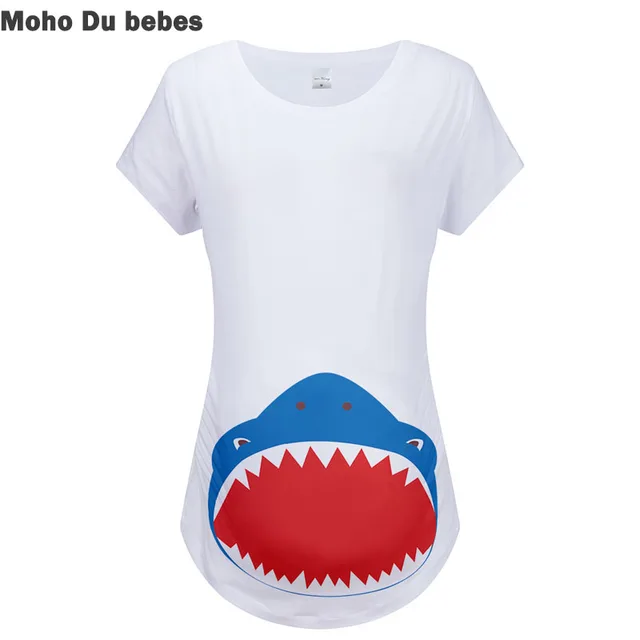 Wanita Slim Kartun Maternity Tops Dimuat Lucu Kehamilan Kaos Cotton | Download Gambar