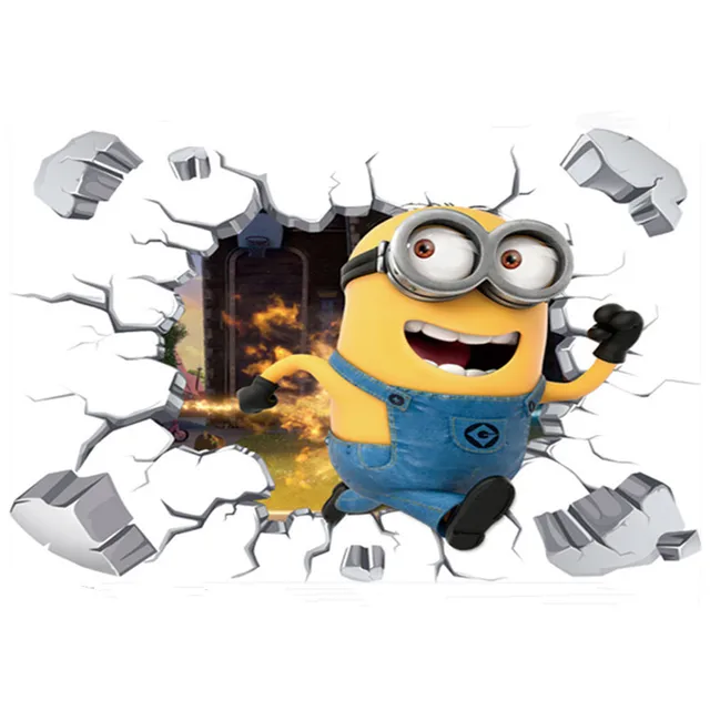 Super Minion Lucu Melalui 3d Dinding Ke Kamar Anak Anak Vinyl Poster | Download Gambar